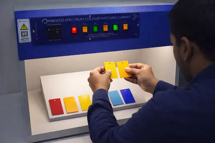 Chips or film tested for dispersion and colour against standard